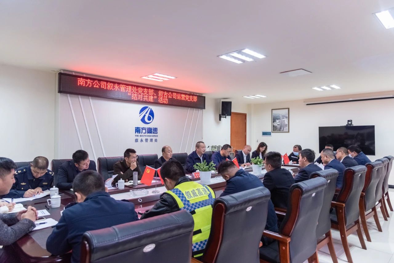 為進一步激發敘古、敘威、納黔高速運營管理工作活力,推動基層黨組織資源共享、優勢互補、共同發展,構建黨建工作新格局。2022年11月22日, 敘古公司運營黨支部與南方公司敘永管理處黨支部開展“結對共建”活動,著力在疫情防控、協同保暢、應急搶險、除冰除雪和優化通行環境等方面互聯互動,融合共進。