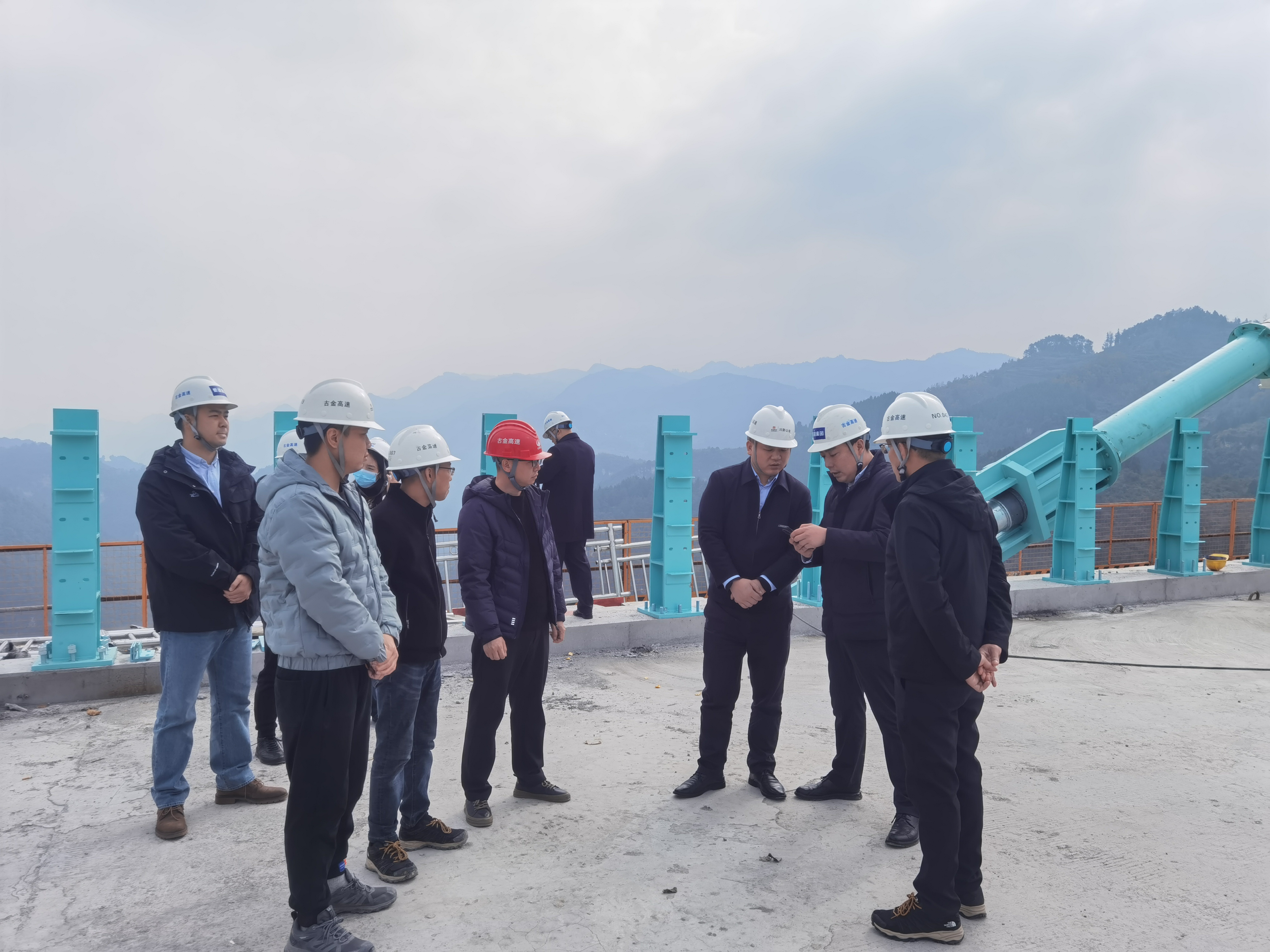 趙根一行先后對古金高速項目赤水河特大橋、白泥互通等重要工點進行督導調研,實地察看項目施工進度、安全生產、環境保護、工程質量、文明施工等情況,通過聽取匯報、現場調研等方式詳細了解古金高速橋面系及附屬工程施工現狀。